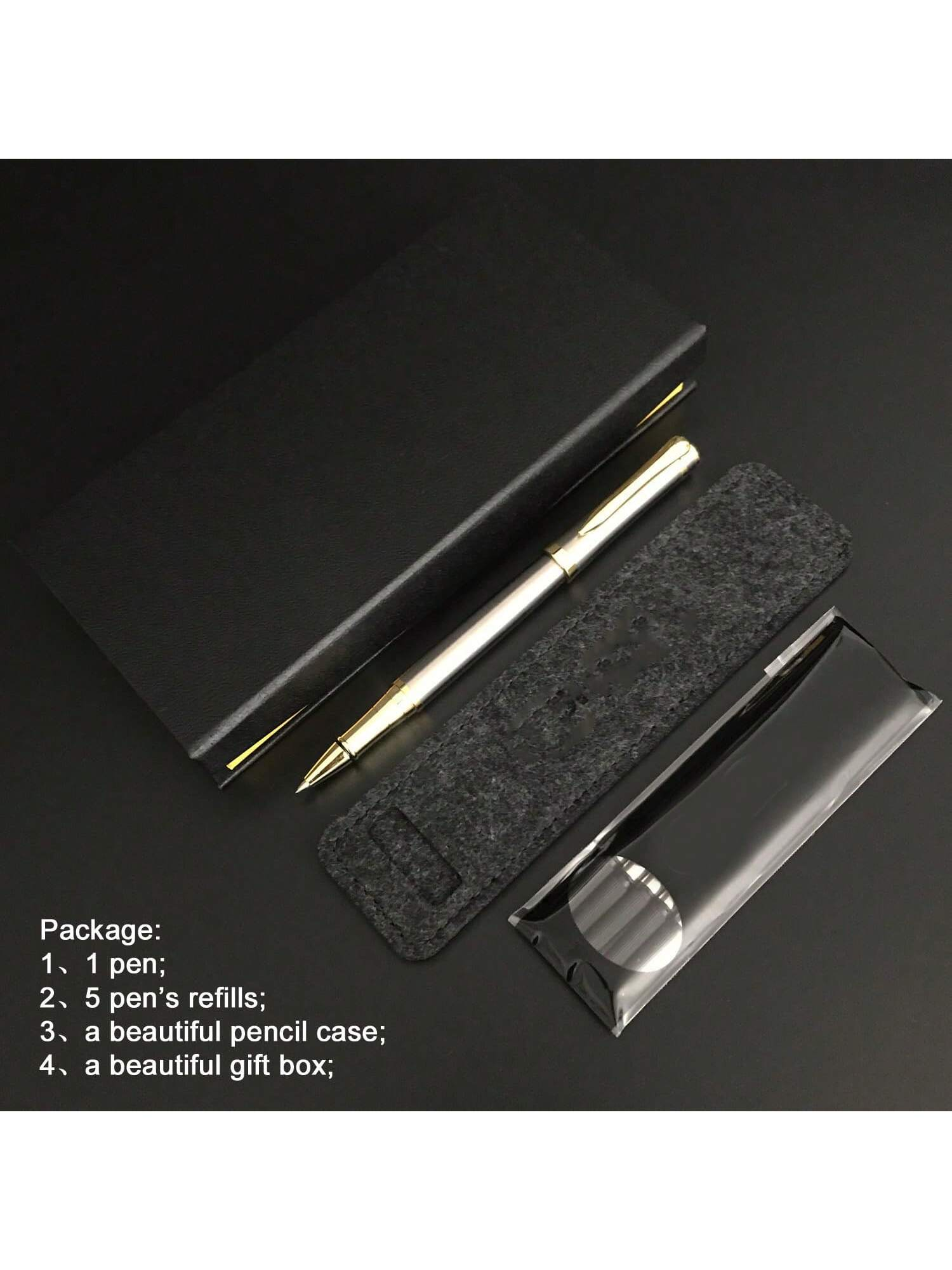 MAKEMECHIC Silver Metal Ballpoint Pen With 0.5mm Black Ink Refill, Smooth Writing Pen Gift Set With Case For Office Or Everyday Use